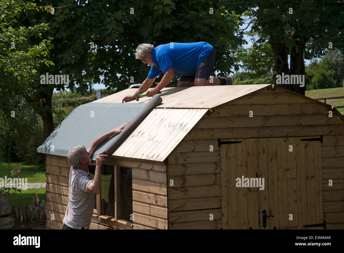 Replace canvas roof with corrugated steel: You can install a metal roof on any shed roof fairly easily, except a barn style gambrel roof with overhang. Adjust the felt as you roll it, making sure that it's straight with no bubbling. Install the fascia and leave edging pieces. It has a greater slope. Build the frame of the roof using 2x4 but make a notch in the 2x4's to allow the frame to sit on the wall of the shed at an angle. The shingles will keep rain and snow at bay, help to reflect the sun's uv rays, and put the finishing touch on your garden shed. Think of a green roof as a lasagne of ingredients. Then, align the components at both ends and plumb them with a spirit level. Use a single piece of material if you can, or be sure to thoroughly seal any overlapping edges. Never install the felt vertically across your roof. Place one nail at each corner, a little way in from the edges, and then one, if not two, in the middle. Step 1 measure the roof to determine how much metal you will need.